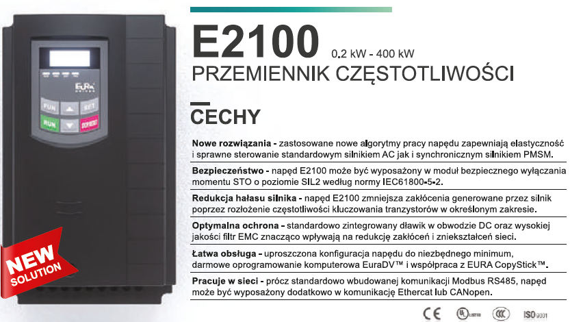 E-2000 Vector to falowniki ogólnego zastosowania ze sterowaniem wektorowym bez czujnikowym. Dzięki zastosowaniu zaawansowanych algorytmów sterowania wektorem pola, falowniki te idealnie sprawdza się w zaawansowanych aplikacjach przemysłowych. W standardzie wbudowany filtr przeciwzakłóceniowy EMC, moduł hamujący oraz komunikacja RS-485 protokołem ModBus, wbudowane szybkie wejście i wyjście licznikowe i wiele innych funkcji czynią to falowniki bardzo atrakcyjnymi na naszym rynku.